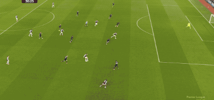 第30分钟,维拉的传跑时机恰到好处,沃特金斯起脚射门,约根森轻舒猿臂,完成封堵。